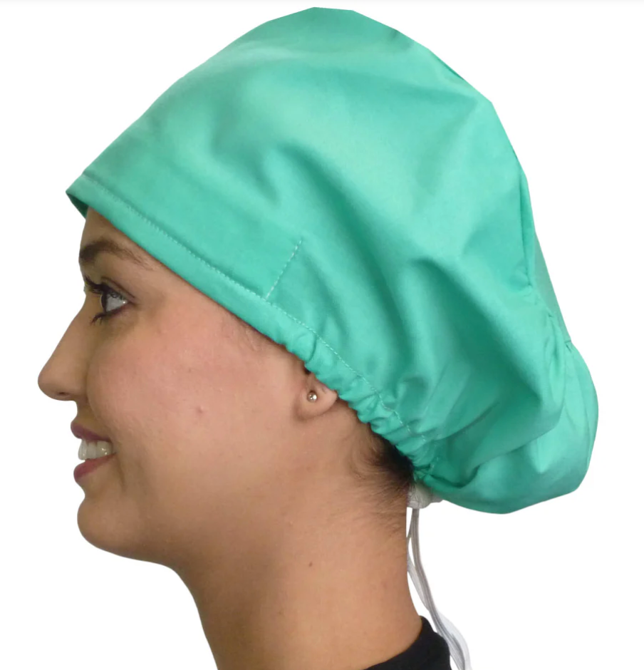 Cord Lock Bouffant Solid Green Scrub Cap Hat