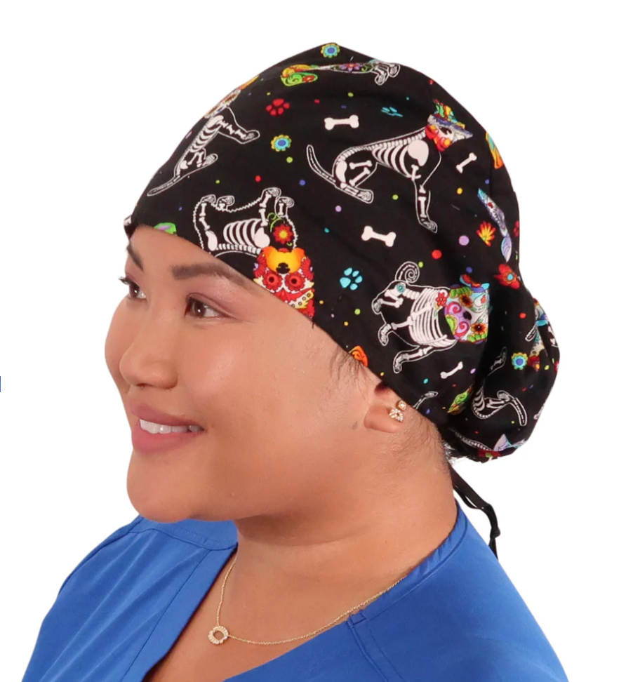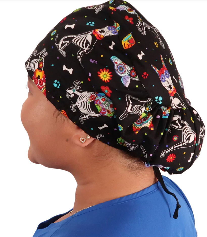 Cord Lock Bouffant Funny Colorful X-Ray Dogs Scrub Cap Hat